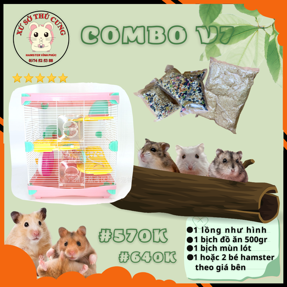 COMBO BAO GỒM LỒNG NHƯ HÌNH, THỨC ĂN, MÙN LÓT , 1 HOẶC 2 BÉ HAMSTER THEO TÙY CHỌN #570K VÀ #640K