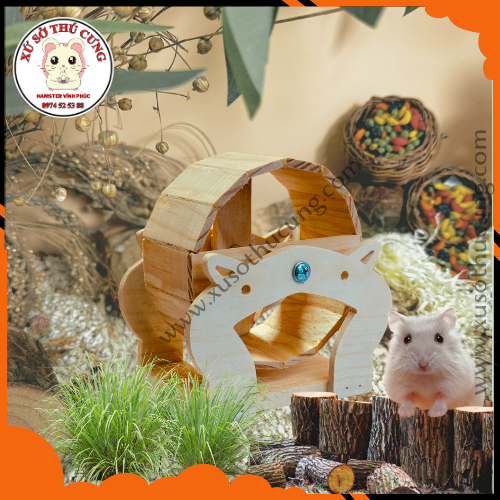 Wheel gỗ mộc cho hamster hình mèo